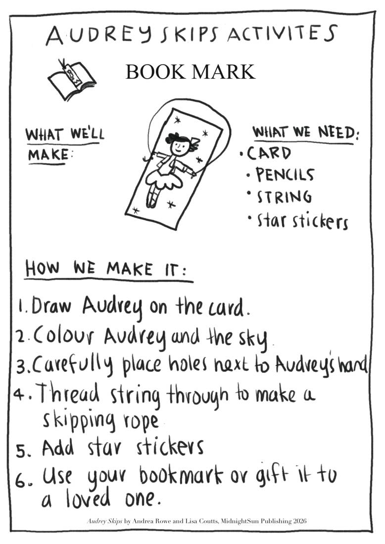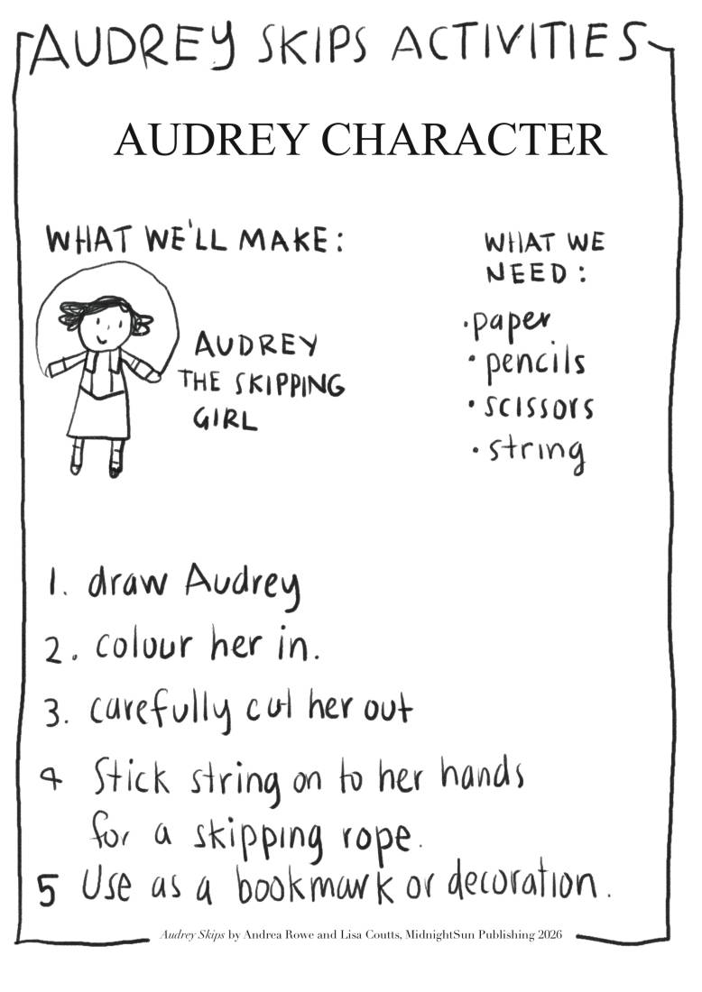 Teachers, libraries and home school families … you can find our Audrey Skips resources and craft activities here:
